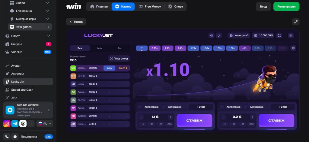 В демо можно делать хоть 1000 ставок подряд, менять суммы, скорость раундов и даже тестировать автовывод. Например, попробуй прицелиться на x2, потом на x10 - и почувствуй, как реагирует игра в разные фазы полёта. После десятка раундов начинаешь понимать динамику Lucky Jet и уже готов к реальной игре в 1win Казахстан, где выигрыши становятся настоящими.